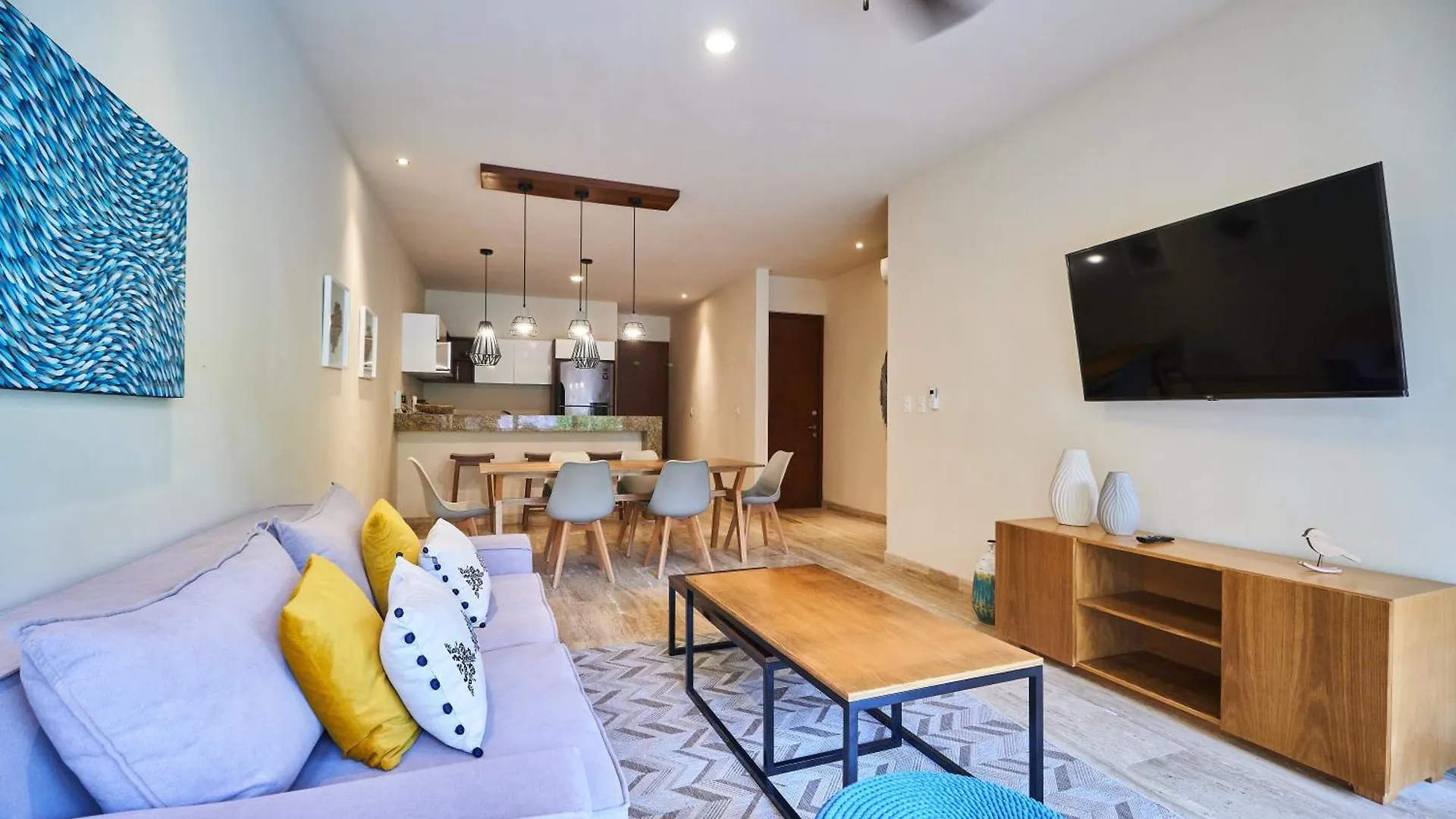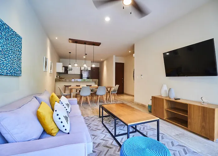 If you want to stay in the Zama district of Tulum, the 100 ft² Homely And Equipped 2Br With Swim Up Pool In Aldea Zama Tulum apartment is a good choice located, within 20 minutes' walk of Mixik. Also, the presence of a private swimming pool guarantees a relaxing stay.